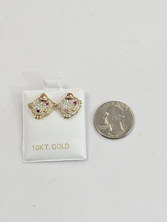 10kt Gold & Cubic Zirconia Kitty Earrings
